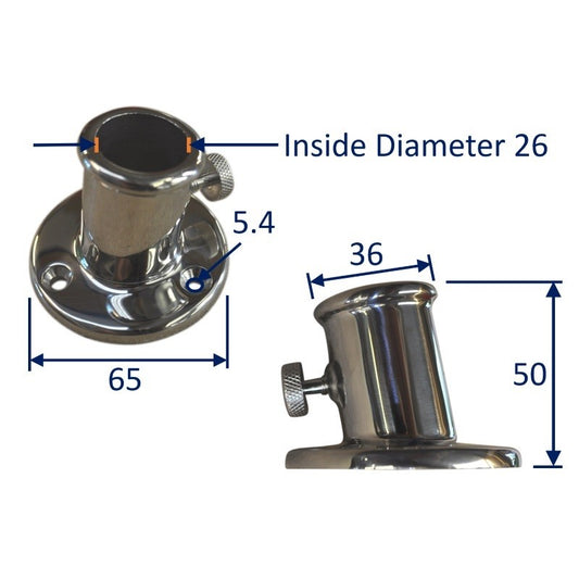 • Recessed Deck Tube Holder (25mm diameter), Canopy Frame Mounting In 316 Stainless Steel, Ideal For Canopy Frames / Bini Frames