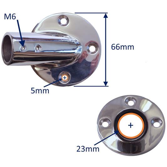 • Tube Mounting Support, Flanged 316 Stainless Steel 60-Degree Tube Mounting Socket For 22mm or 25mm Tube