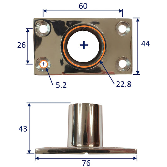 • Recessed Deck Tube Holder, Canopy Frame Mounting In 316 Stainless Steel, Ideal For Canopy Frames / Bini Frames for 22mm Tubes