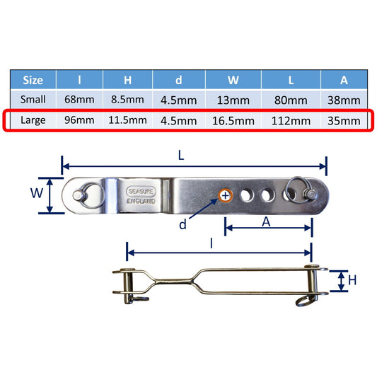 • Dinghy Shroud Adjuster, 316 Stainless Steel Shroud Attachment Bracket, With Variable Length Adjustment