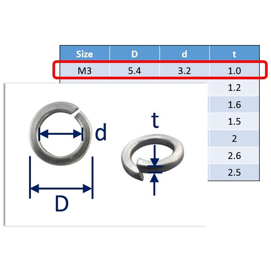 • A4 Stainless Steel Spring Washers, 316-Grade Stainless Locking Washers
