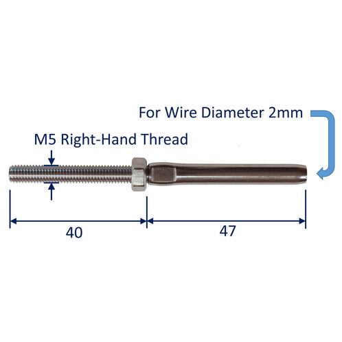 • Swage Stud End Fitting For Wire Rope, 316 Stainless Steel Swage Fitting, With Metric Thread