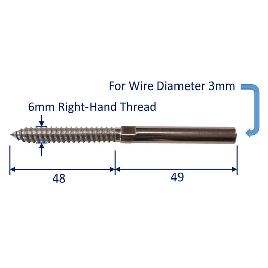 • Swage End Fitting For Wire Rope With Wood-Thread, 316 Stainless Steel Swage Fitting