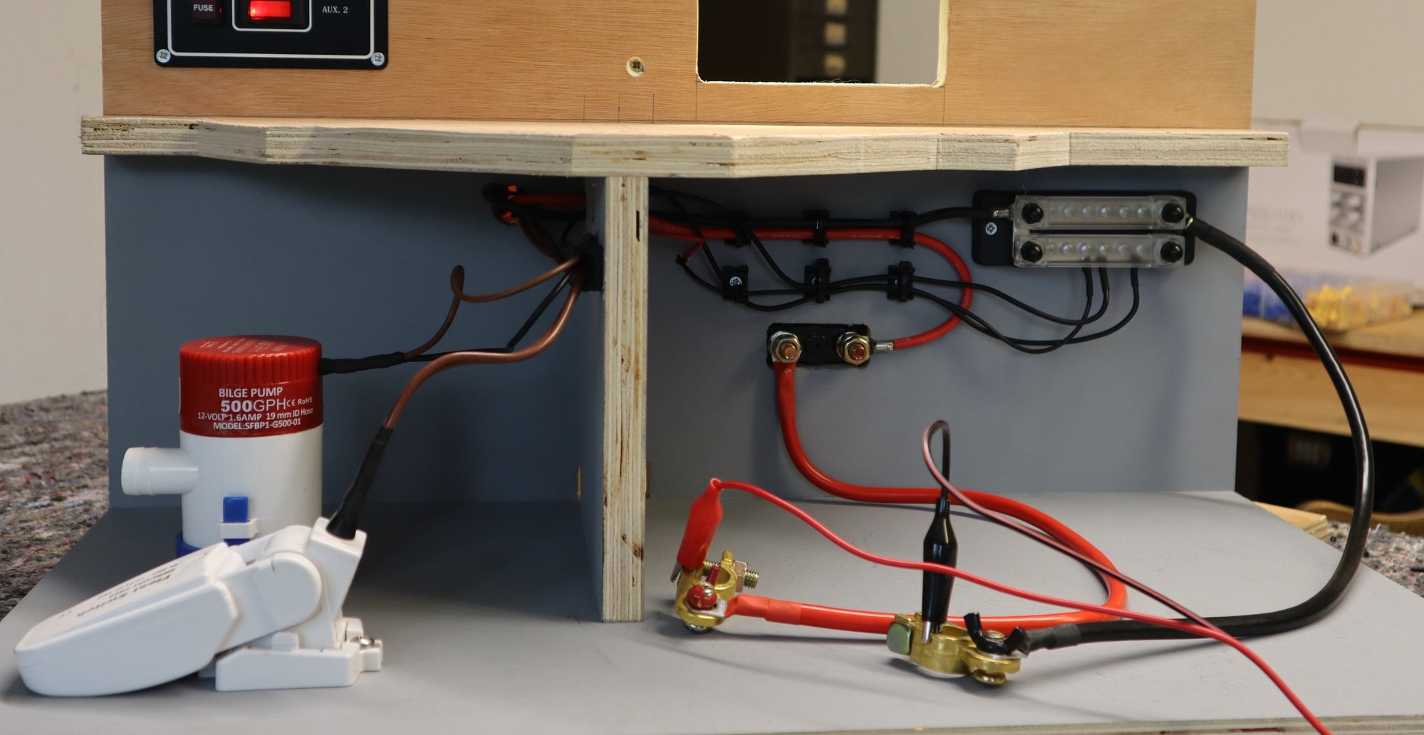 Boat electrics from scratch made easy! - Part 3. In this episode we install two electric bilge pumps into our boat electrical mock-up. Having already installed the busbar, master switch and main switch panel, we have most of the boat electrical infrastructure in place, so installing these bilge pumps does not take long.