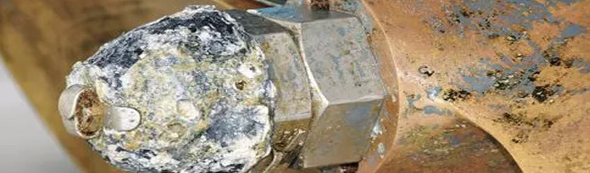 There are two types of corrosion that we need to be wary of as boat owners, Galvanic Corrosion and Electrolytic Corrosion.  Galvanic corrosion is caused when parts made from different metals are joined or connected to each other while in water.  When dis-similar metals are put into water, a voltage is produced, effectively creating a battery causing one of the components to corrode.  Which part will corrode depends on their relative position in the galvanic series.  The part of the boat lower down in the series will form the cathode, and the one higher up in the series will be the anode.  The anode is the part which will be corroded.