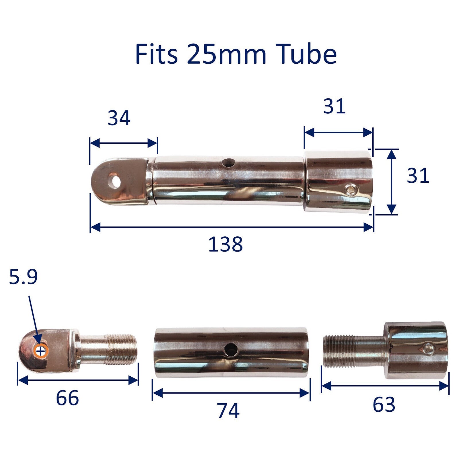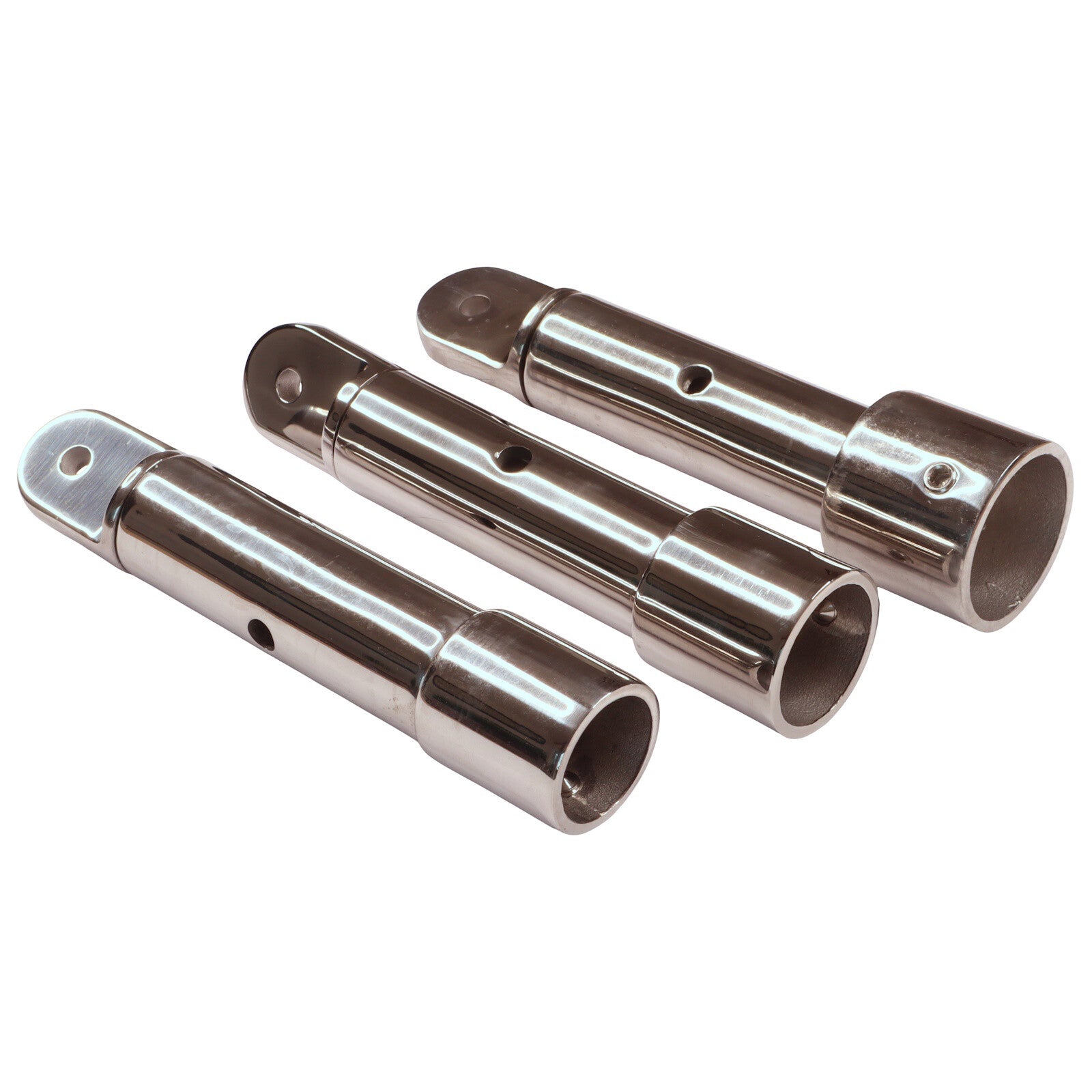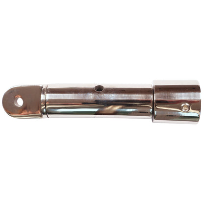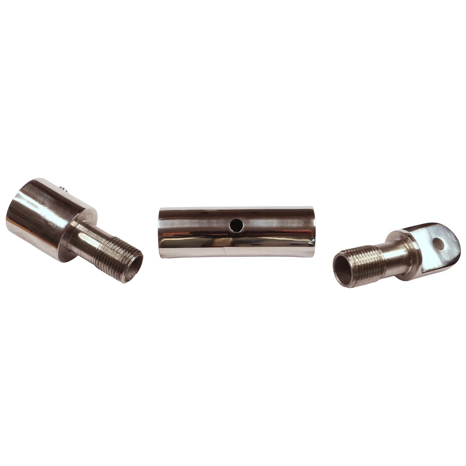 Once installed, our bimini tensioner can be easily adjusted by turning the centre section.  The upper and lower threaded end parts have opposing (left-hand and right-hand) threads, so no need to dis-assemble the ends to lengthen or shorten the tensioner.