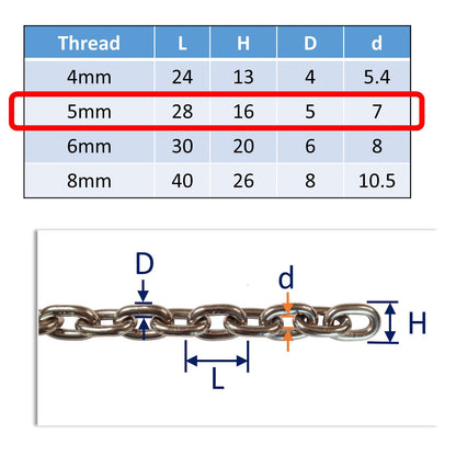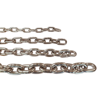 316 Stainless Steel Short Link Chain (Based On DIN 766) For Use With Anchors, Available in a Variety of Sizes, Sold By The Metre