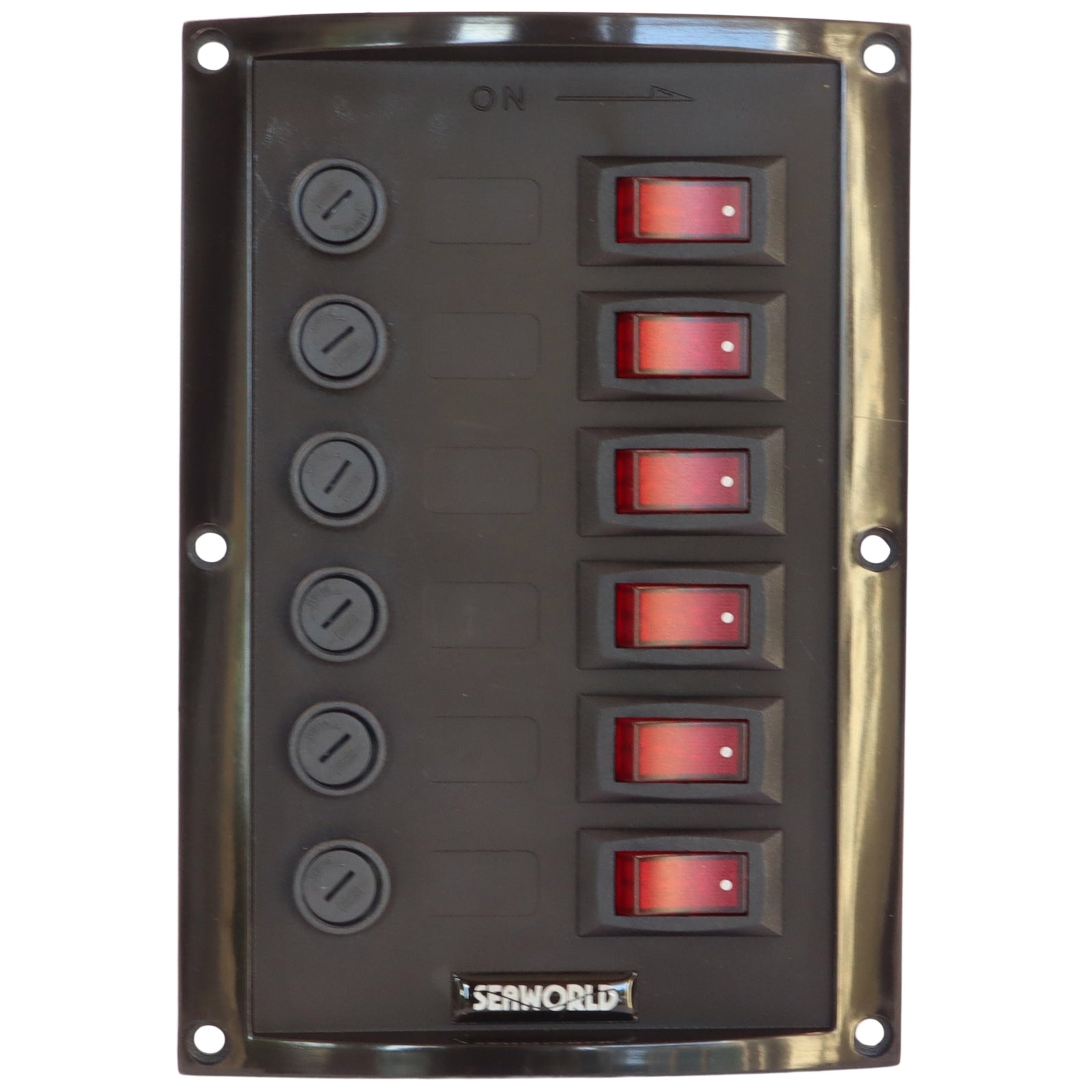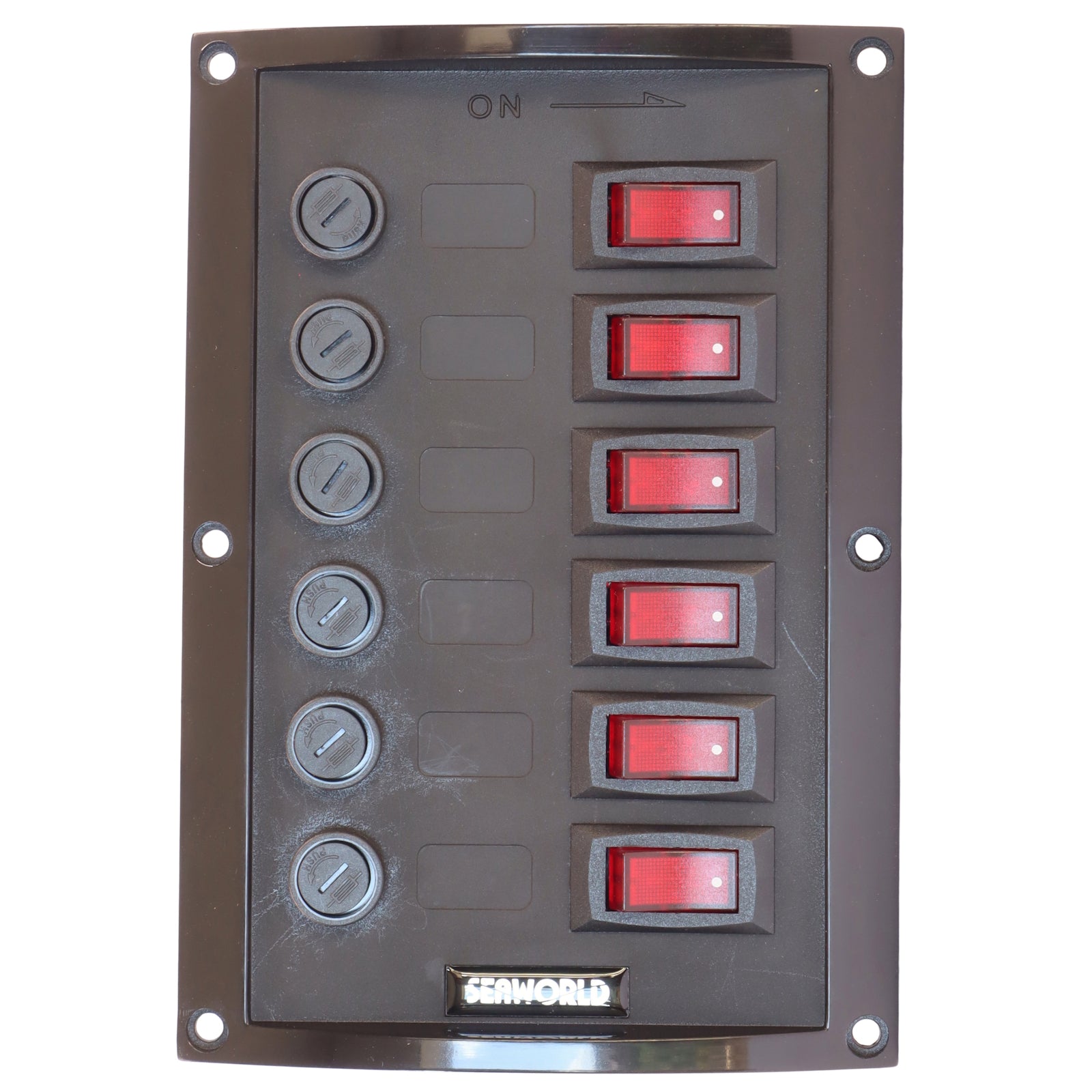 6-Gang Boat Switch Panel – 12V – With Illuminated Rocker Switches And Replaceable Fuses