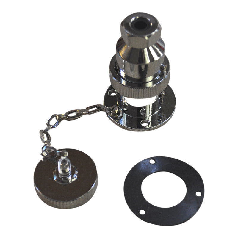 Boat Waterproof Electrical Connector, 5A 2-Pole & 3-Pole. Made from brass and chrome plated. Complete with waterproof blanking plug for when it is not being used. Ideal for removeable electrical equipment such as autohelms or VHF radios.
