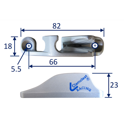 Side entry jam cleat for ropes, starboard. Camcleat CL217Mk1 for rope size up to 6mm. Manufactured from aluminium.
