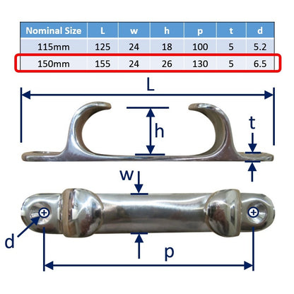Fairleads straight, Stainless Steel, Available in 125mm and 155mm