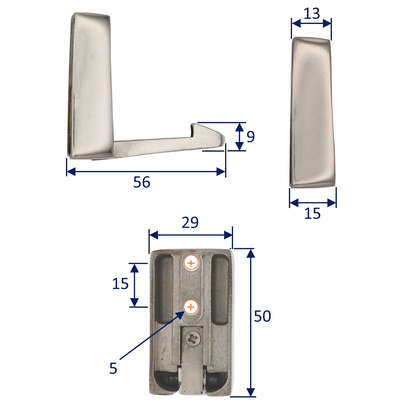 For attaching the rectangular hook, we would suggest 4.2mm self-tapping screws (not supplied but available from our website here – choice of lengths available).