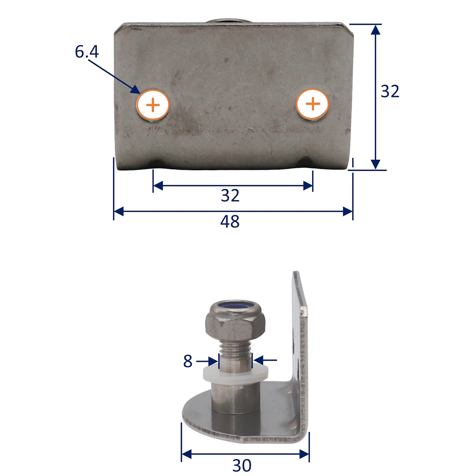 Osculati 90 degree plate with 8mm threaded internal pin to be used in conjunction with their gas struts.  Manufactured in marine-grade stainless steel this item comes with 2 mounting holes requiring x2 M6 set-screws (not supplied).