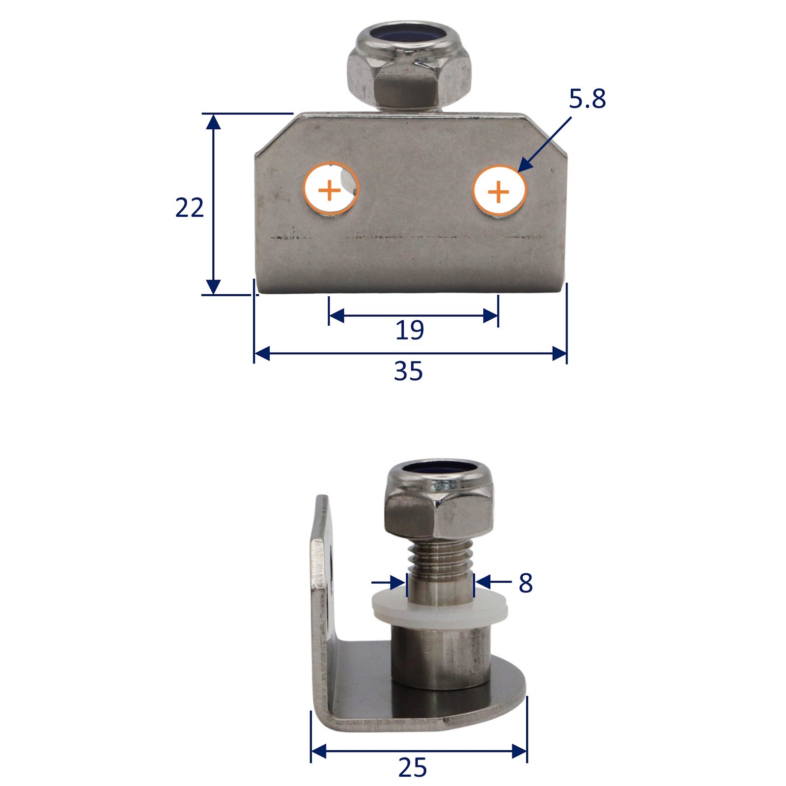 Gas Strut 90-Degree Mounting Plate – With 8mm Threaded Internal Pin – For Our Osculati Stainless Steel Gas Struts – Available In Two Sizes