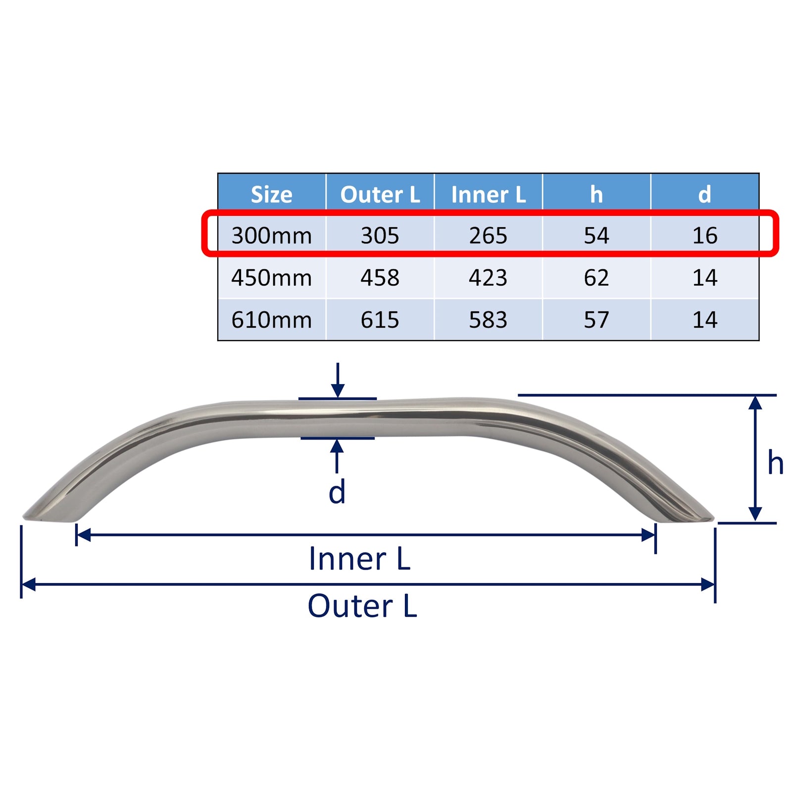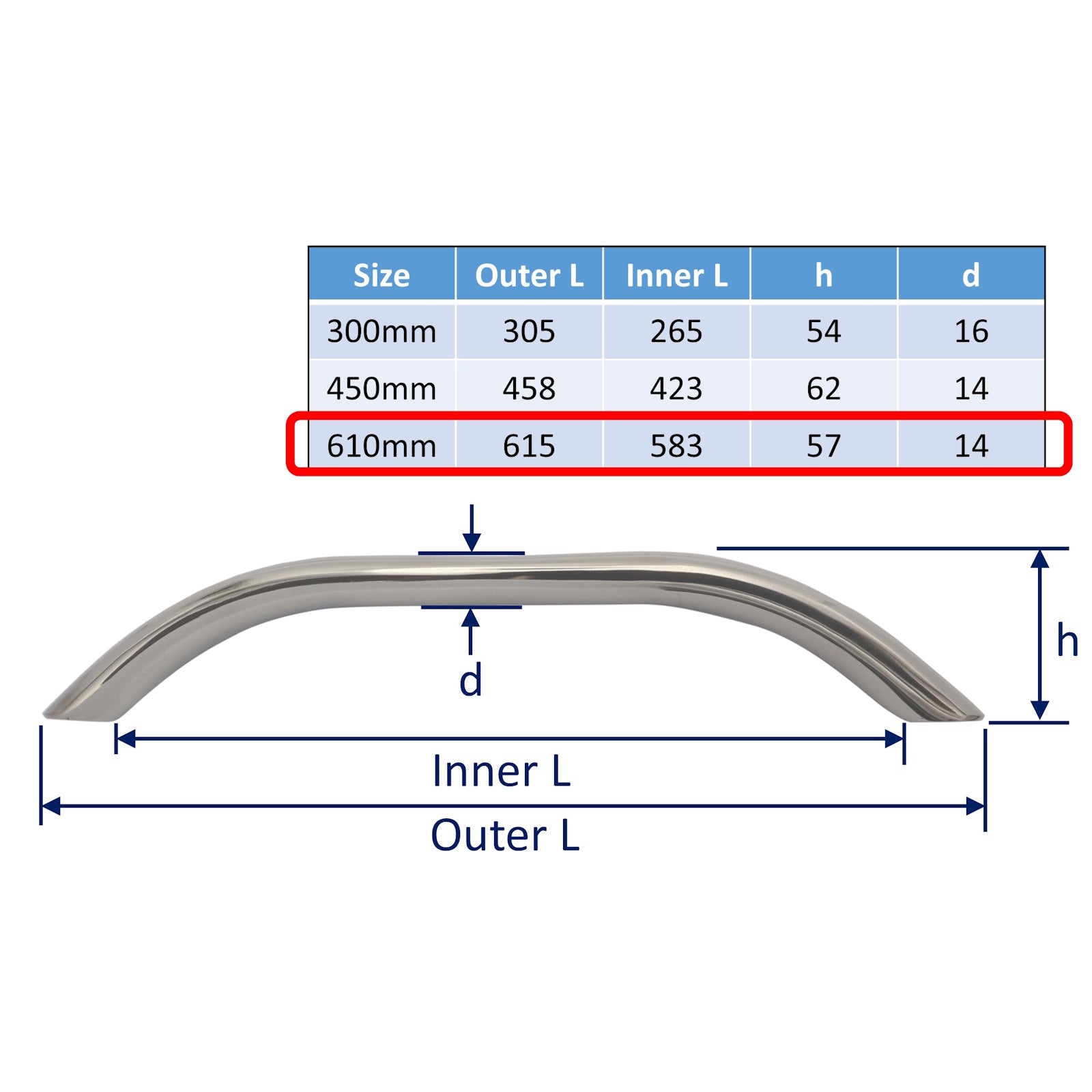 Grab Handle – Polished 316-Grade Stainless Steel – Hidden Attachment – Available In 3 Sizes