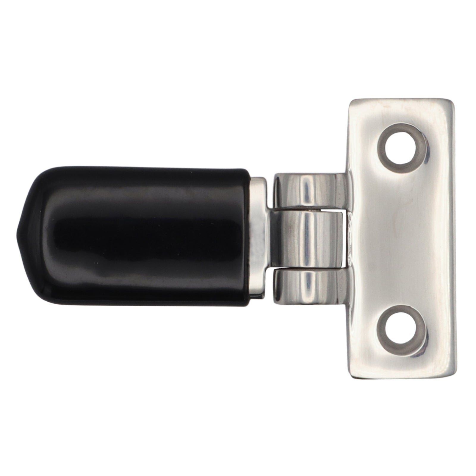 This simple, but elegant door stop works in a simple way.  It is for sliding doors and windows on your boat.  The door stop is positioned so that when the door or window is slid into the open position, the door stop arm is ‘flipped over’ to prevent the door or window from closing.