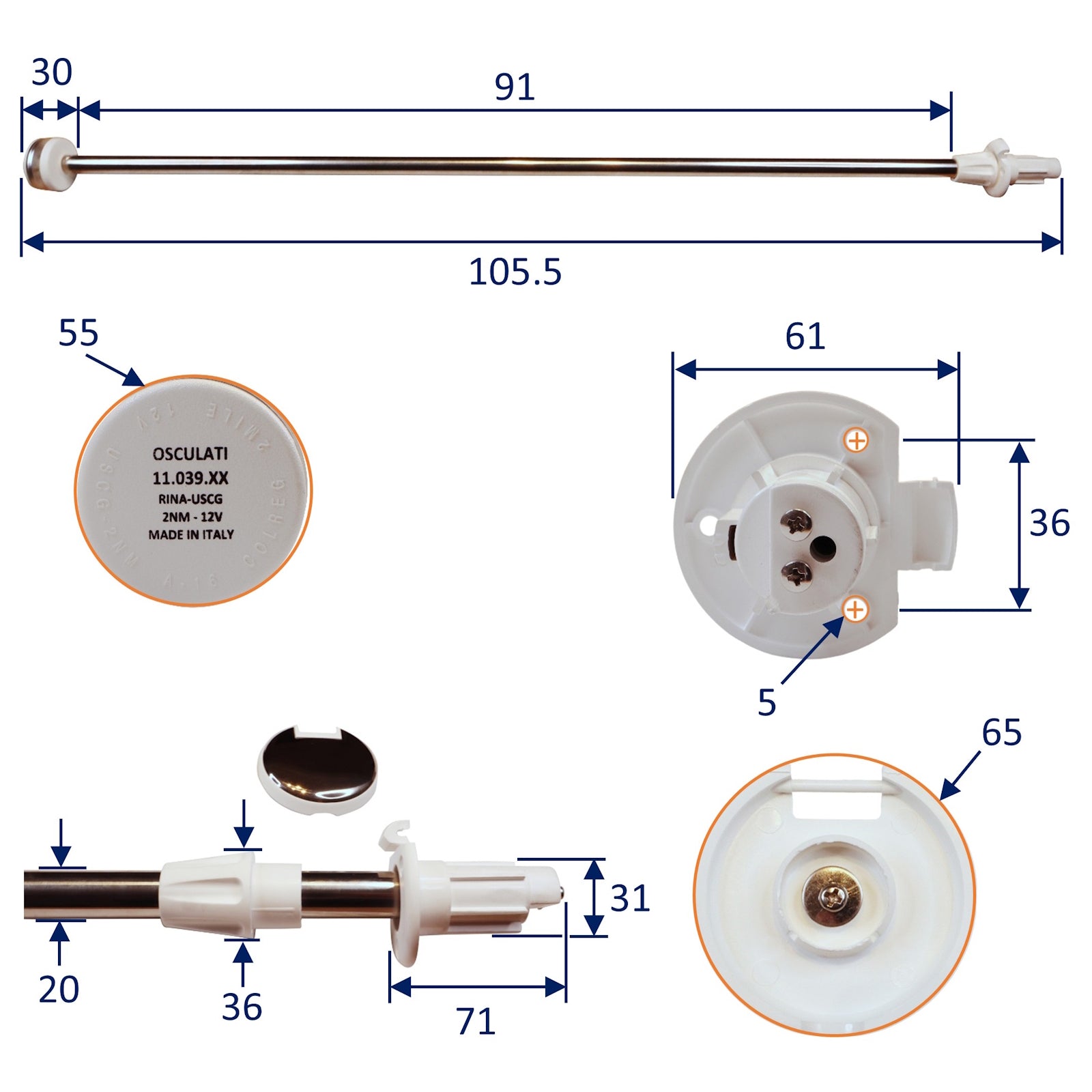 LED Light Rod/Pole Evolved 360 Degree - For Hulls 20m – All-Round White Navigation Light