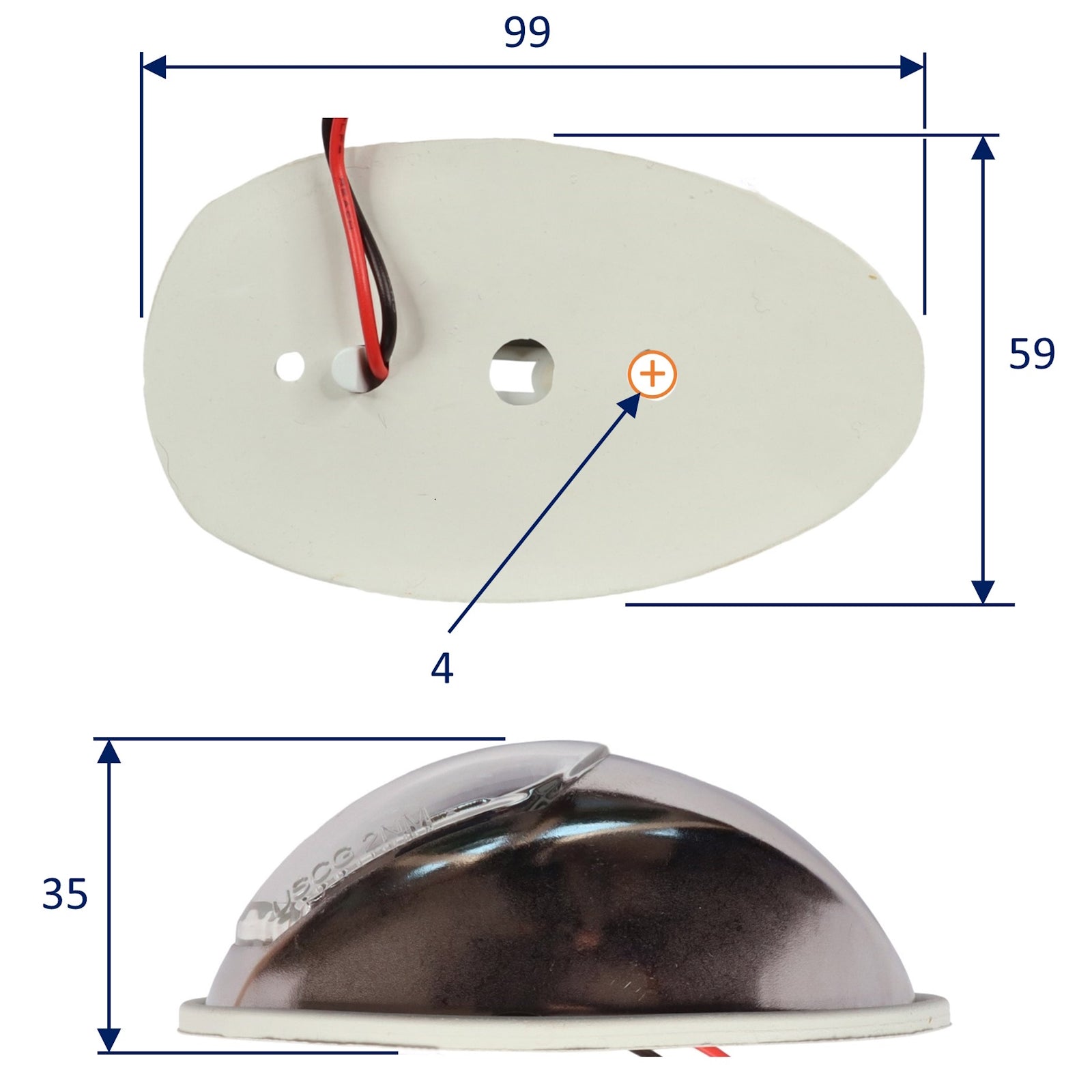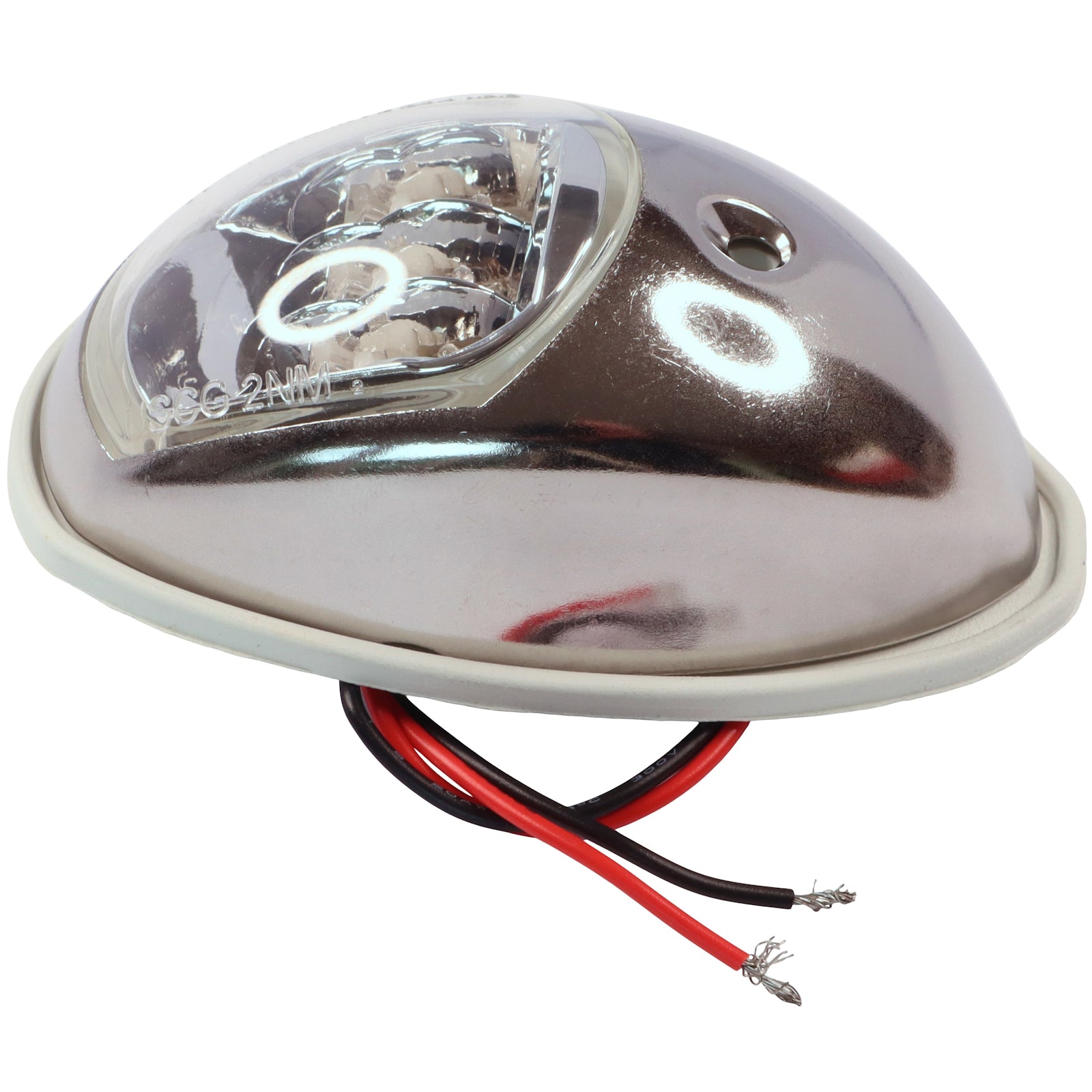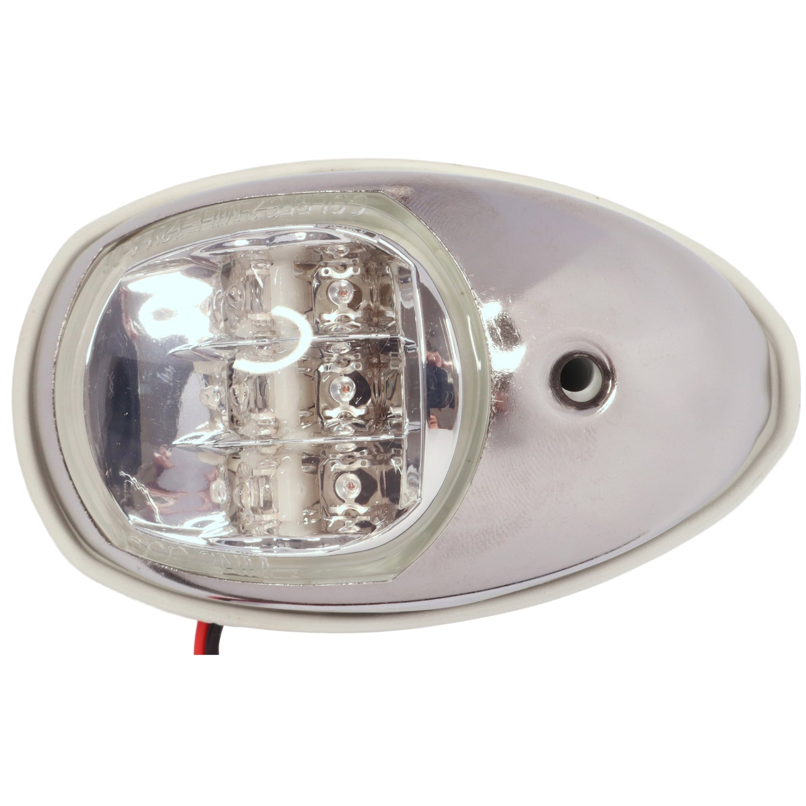 Attachment of these navigation lights is via a single fixing screw, which goes through the outer stainless housing, the main body of the lamp, and the rubber gasket.  Also, next to where the wires come through, is an anti-rotation post.  Drill a hole for the post / wires at the appropriate point.