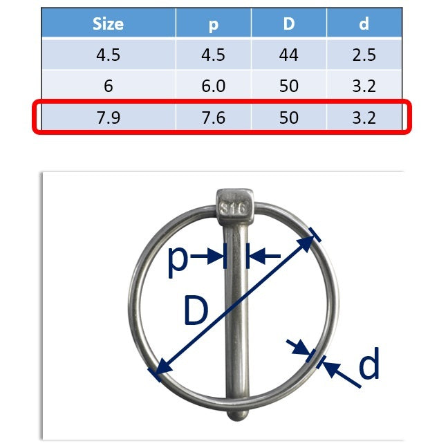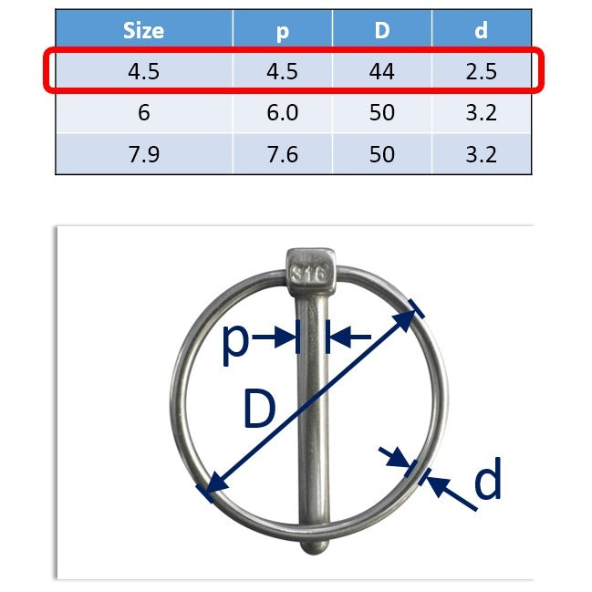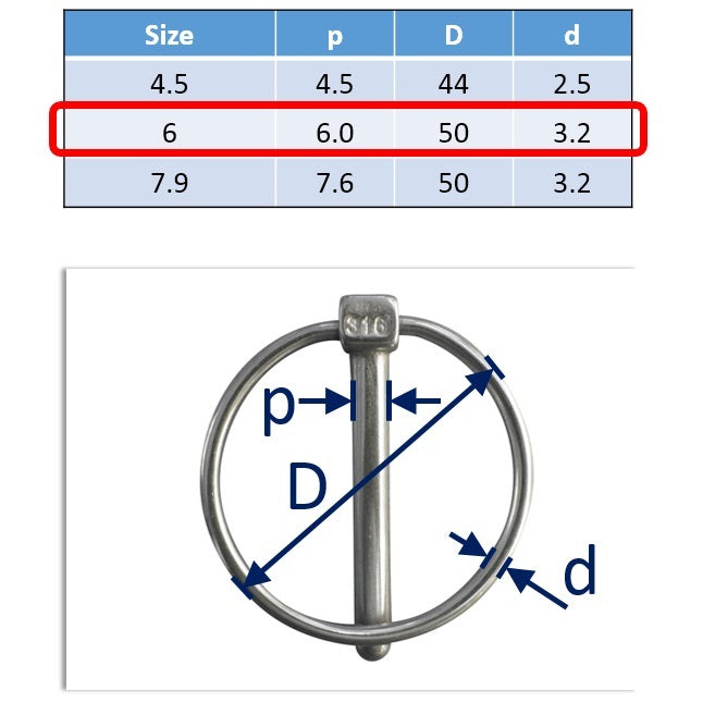 Linch Pins, Stainless Steel, Available in sizes 4.5, 6 & 7.9