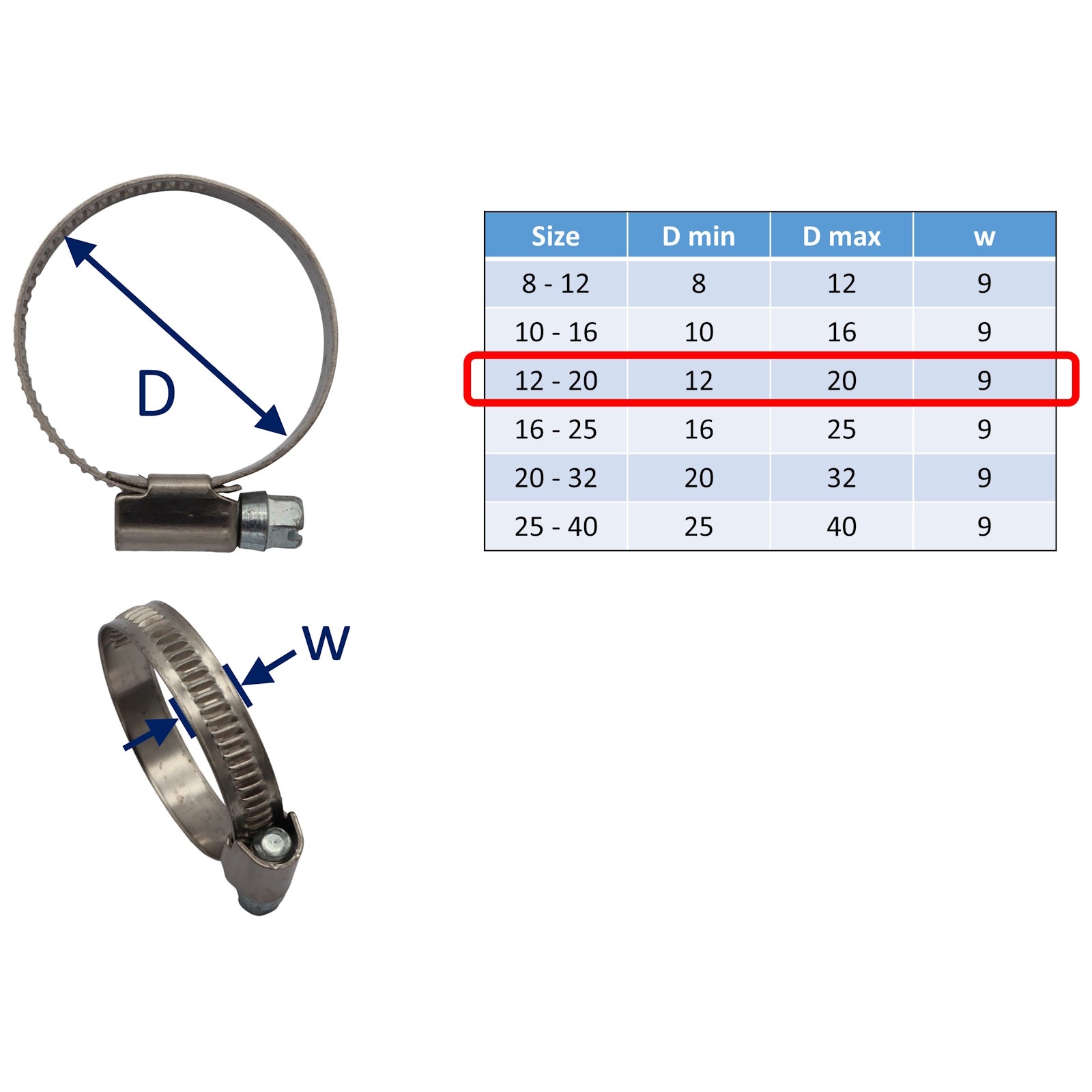 Use these hose clamps or jubilee clips wherever a flexible hose is attached to a fitting, to help ensure a permanent leak-free connection.