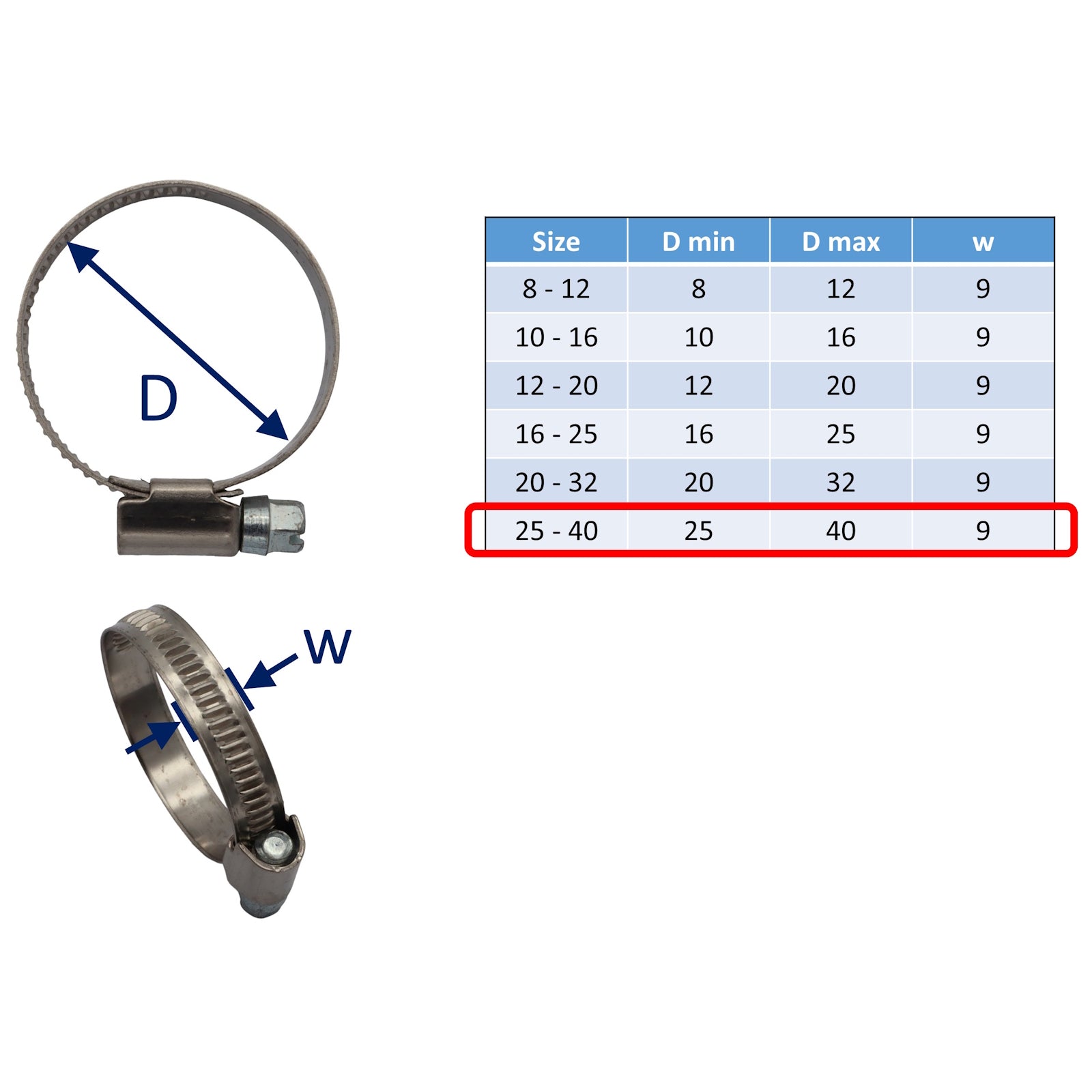 These Stainless steel heavy duty hose clamps by Osculati are made of AISI 316 grade stainless with minted (press-formed) teeth for maximum strength.  The clips come with an anti-seizure galvanised 316 stainless steel screws.