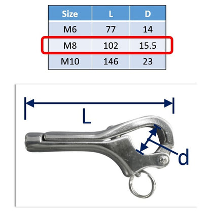 Stainless Steel Pelican Hook - Quick Release Clip - 316-Grade - Choice Of Metric Sizes