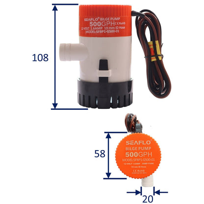 SEAFLO 500 GPH Electric Bilge Pump / Submersible Pump / 12Volt Bilge Pump. Boat Bilge Pump