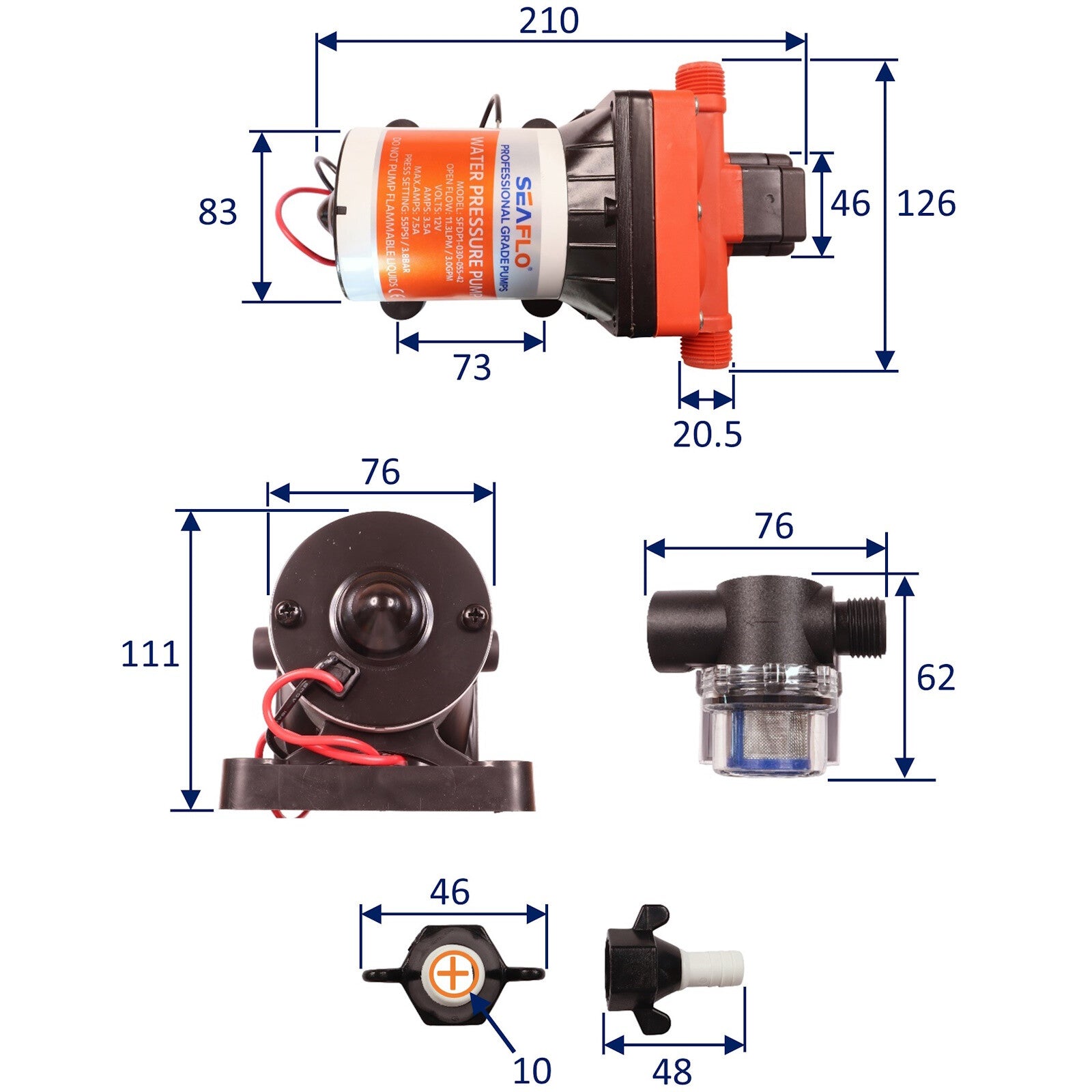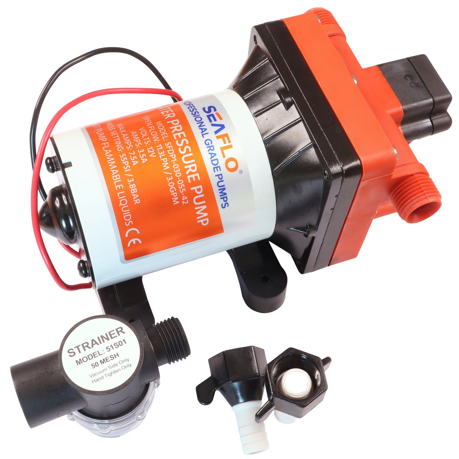 Introducing the SEAFLO water pressure pump - 42 Series, your reliable companion for a smooth water supply on the go. Designed for efficiency and convenience, this 12-volt 4-chamber diaphragm pump ensures a steady flow of water in your boat, RV, or off-grid cabin.