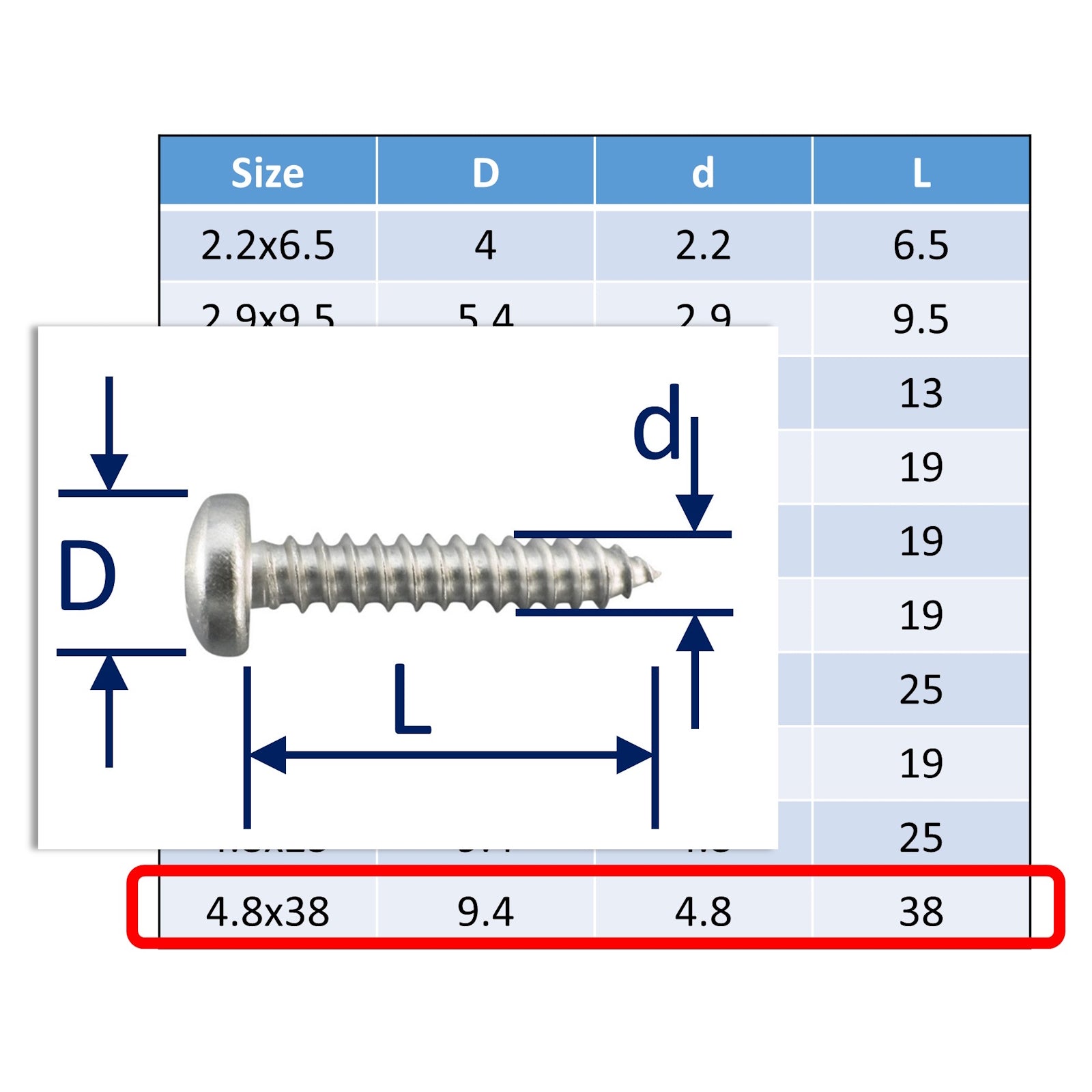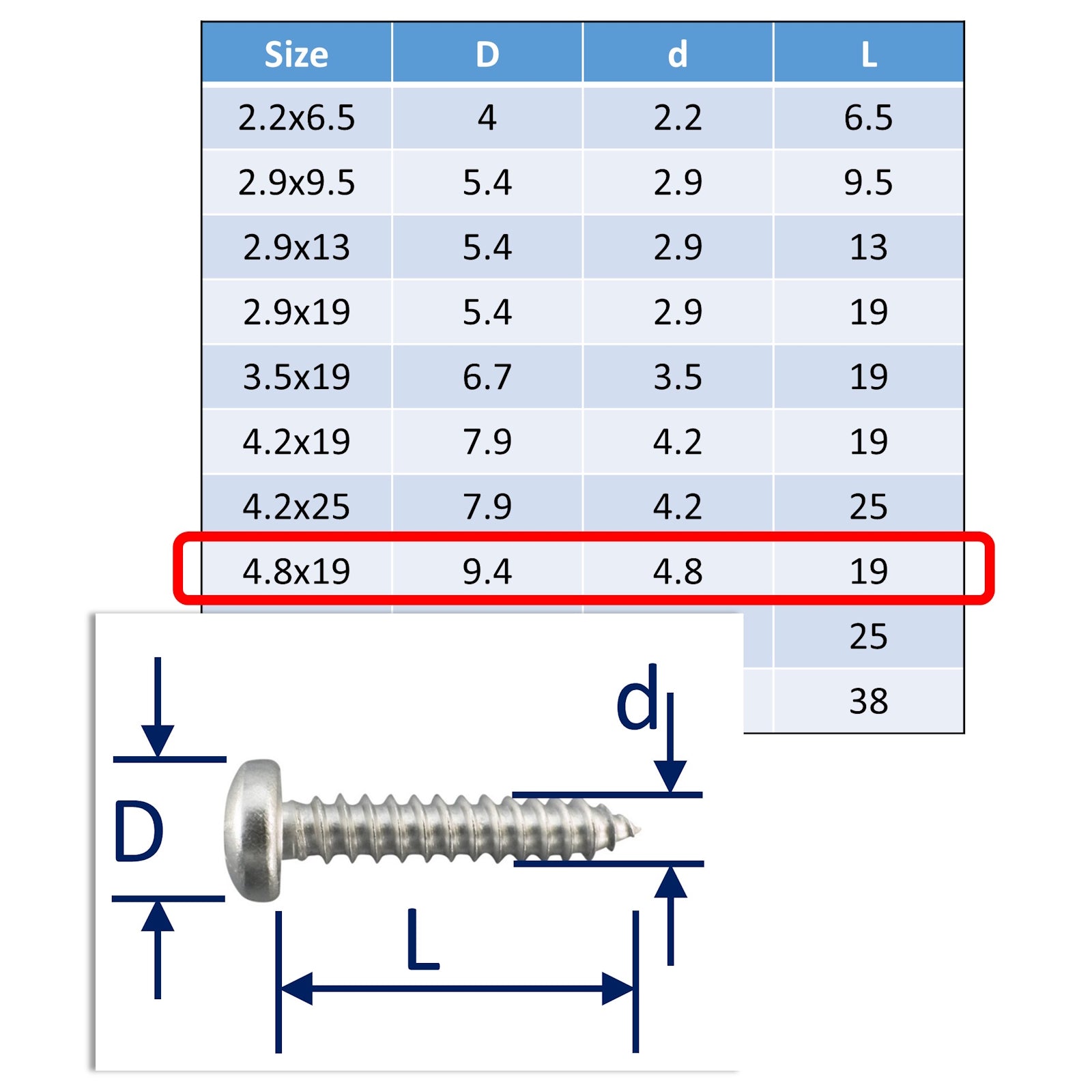 These stainless self-tapping screws have pan-head style and are suited to fittings without countersunk holes. Alternatively, use our countersunk self-tapping screws instead, for fittings with countersunk holes.