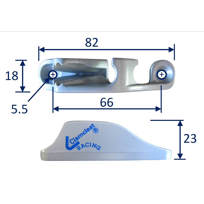 Side entry jam cleat for ropes, port. Camcleat CL217Mk1 for rope size up to 6mm. Manufactured from aluminium.