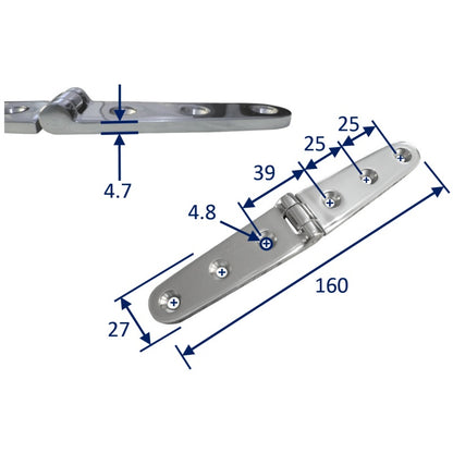 Stainless Steel Strap Hinge - 316 Grade Stainless Door Hinge With Polished Finish 160x26mm