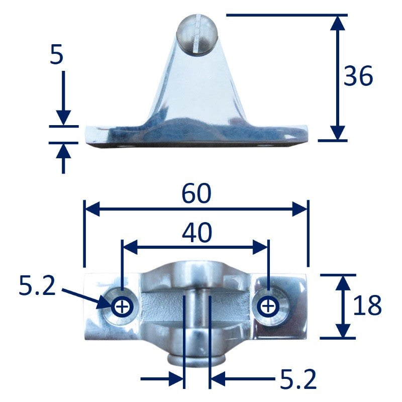 Stainless steel deck hinge, for spray hoods and canopies. This secures to the deck and acts as a hinge point for frames for boat hoods, boat canopies etc.