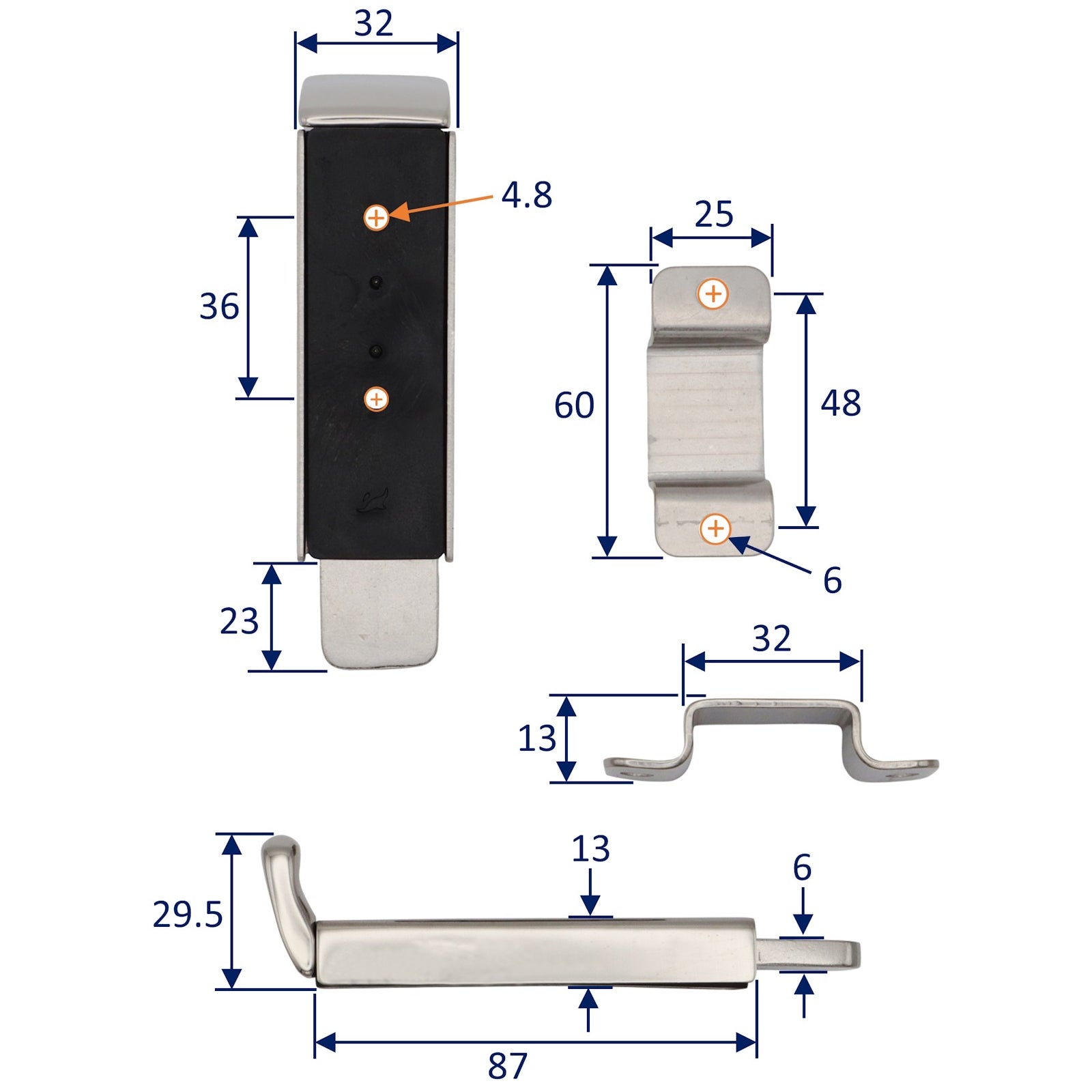 This two part door latch is manufactured in polished A4 stainless steel to ensure that even when exposed to a harsh marine environment it will retain its appearance.  Ideal for boat cabin doors, this door latch has a robust look and feel, while its rounded and polished corners give it an elegant look.