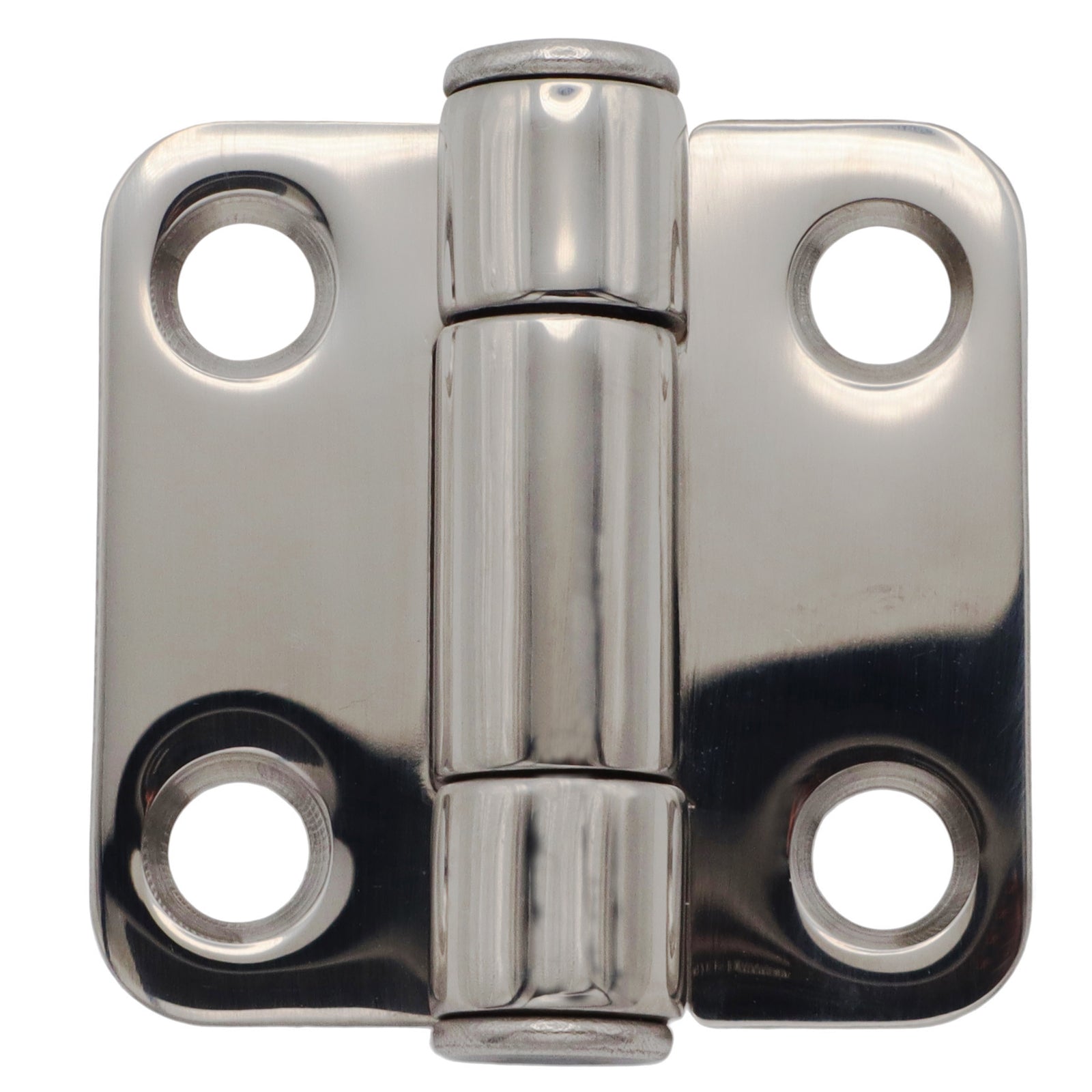 These hinges have a polished finish, and their marine-grade stainless steel makes them ideal for both interior and exterior use.