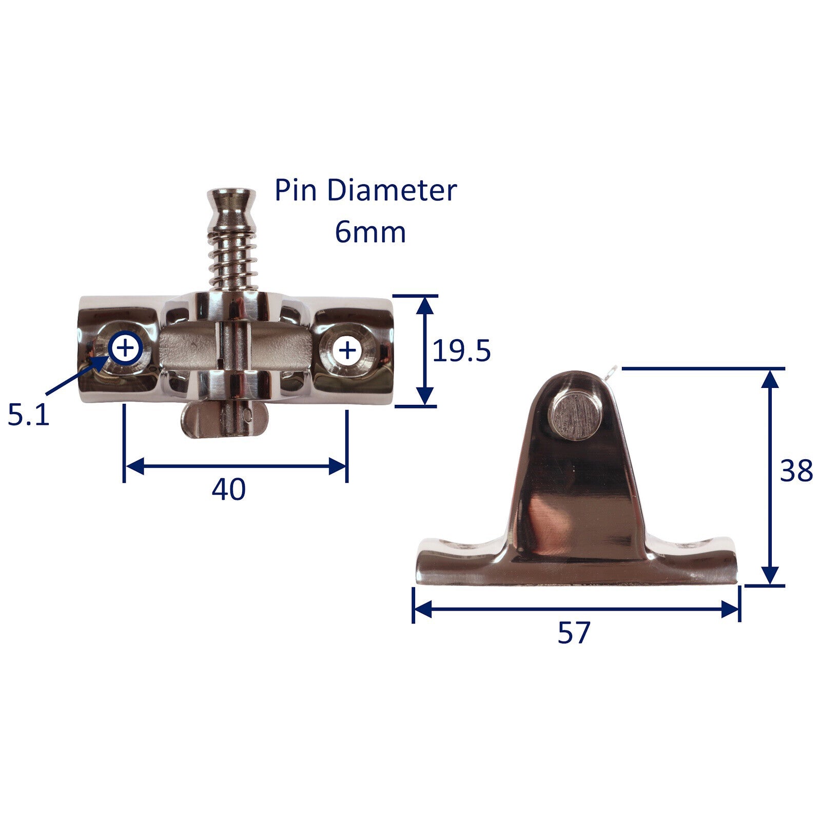 Made in marine grade stainless steel this fitting will stand up to a harsh marine environment retaining its appearance. The pin can easily be removed without the need for any tools.