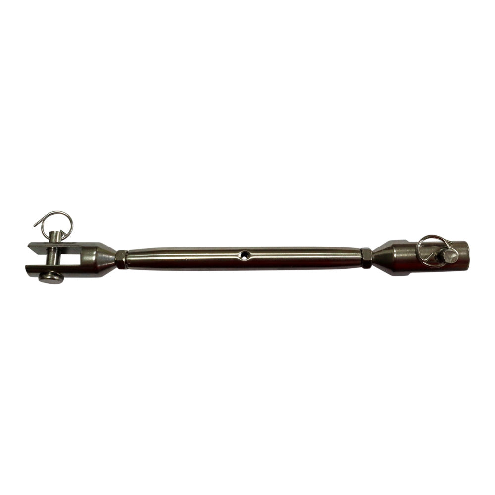 Stainless steel turnbuckles / rigging screws, manufactured from 316 marine-grade stainless to provide maximum corrosion resistance ensuring they retain their appearance even when exposed to a harsh marine environment.  Our turnbuckles (sometimes known as bottle-screws or rigging screws) make them ideal for applying tension to sailing boat and dinghy rigging and shrouds where they attach to deck fittings. Stainless steel turnbuckles also have architectural applications such as stair rail guards made with stainless steel cable or wire-rope.