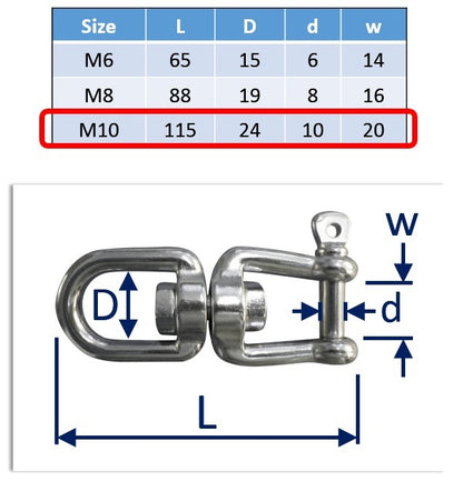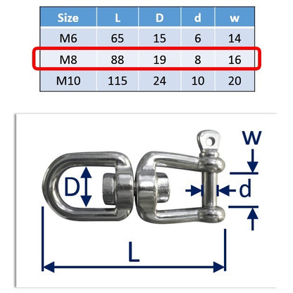 Jaw And Eye Swivel - 316-Grade Stainless Steel - 6mm, 8mm, 10mm Sizes - Anchor Chain Swivel