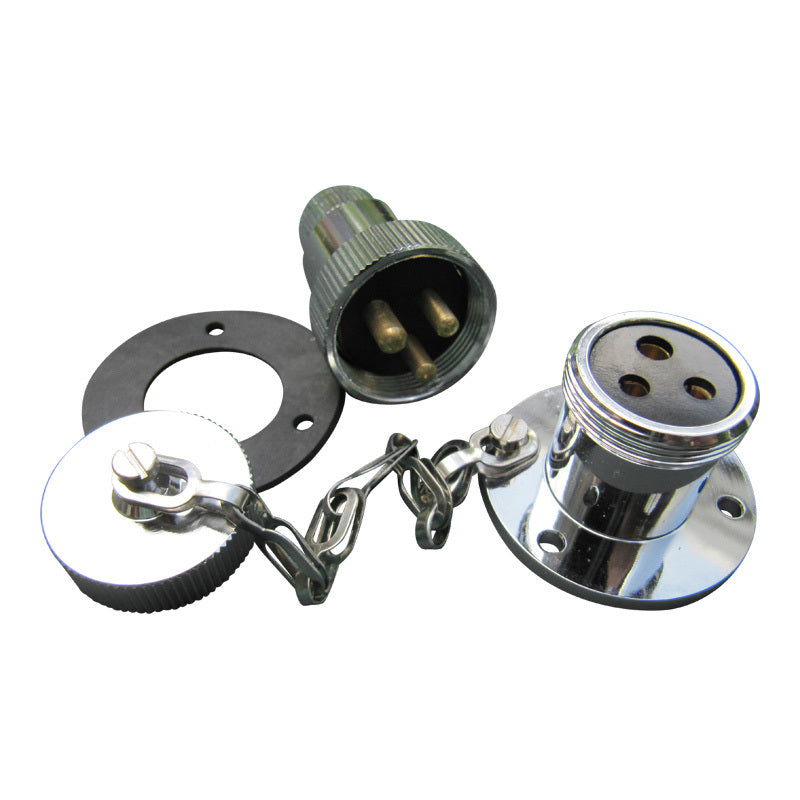 Waterproof plug and socket for boats, with 3 Amp capacity.  Available in 2 pin or 3 pin versions, use these waterproof plug and sockets for powering external 12V or 24V equipment from your boat's power supply.  Choose from 2 pin or 3 pin versions depending on your equipment's need.