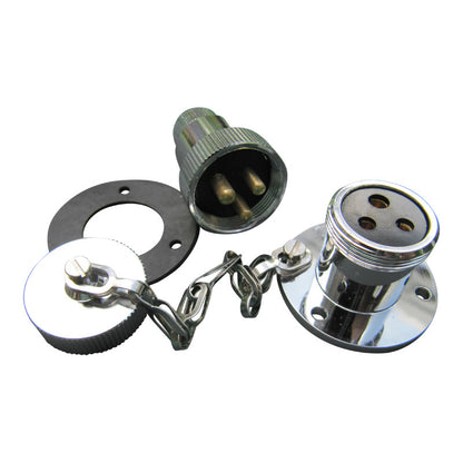 Waterproof Plug And Socket For Boats - 3Amp - Chrome Plated Brass - 2 Pin & 3 Pin Versions - Including Waterproof Cover